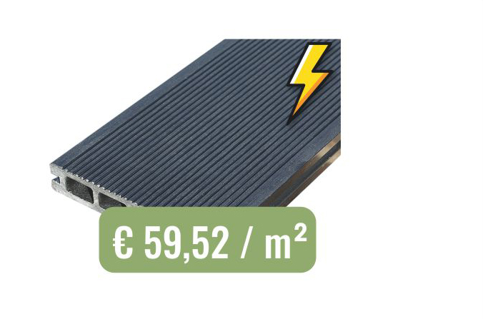 Die WPC Terrassendiele der Serie Basic Hohldiele, ist der Klassiker unter den Dielen. Es ist kein Streichen oder Ölen notwendig. Nach leichter Aufhellung in den ersten Monaten bleibt die Grundfarbe über viele Jahre erhalten. Die Sichtseite 1 ist gerillt und zart gebürstet. Die Sichtseite 2 ist naturglatt und gebürstet. Die WPC Terrasse enthält die positiven Eigenschaften von Holz (ca. 50%) und Kunststoff (ca. 50% PEHD).